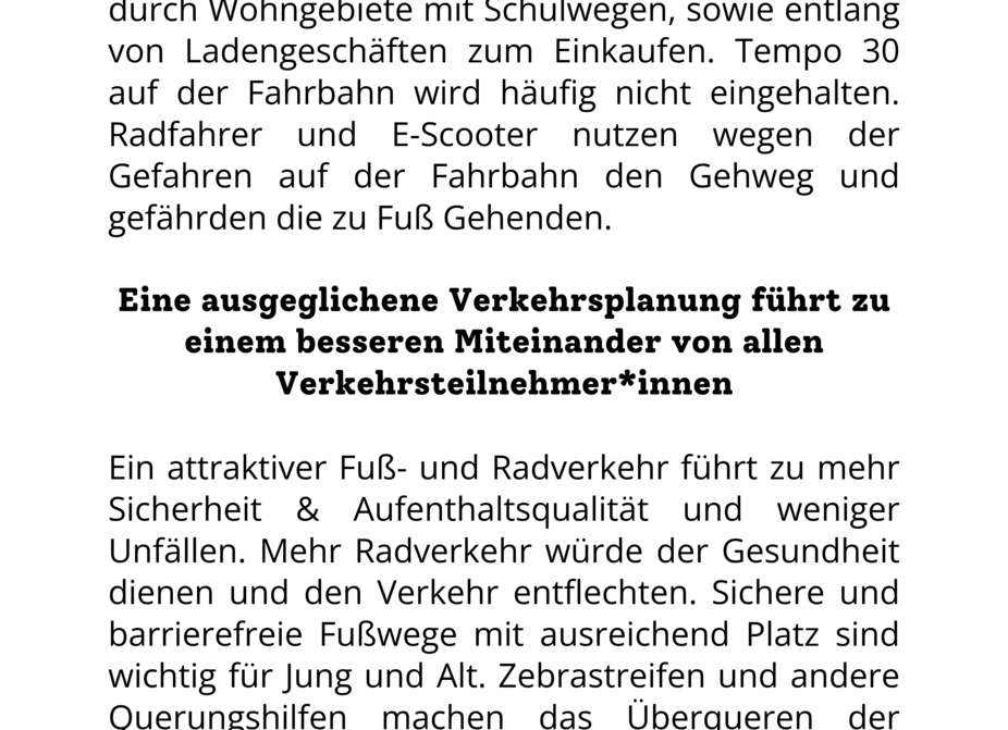 - Sicherheit auf dem Fußweg & Sicherstellen von Tempo 30