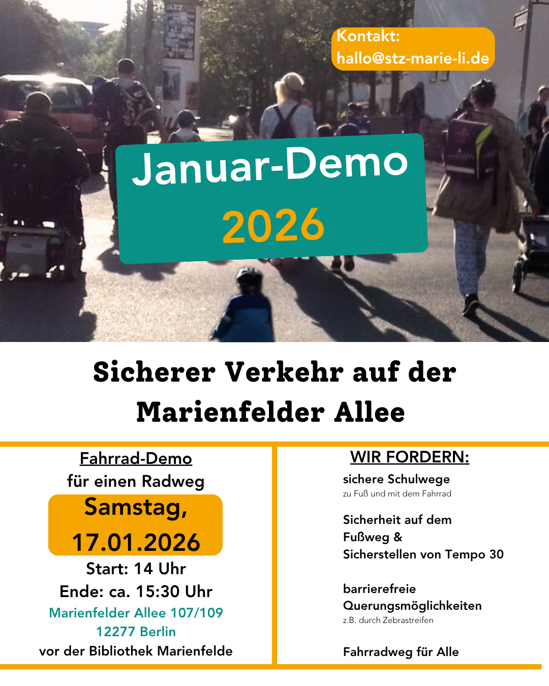 17. Januar 2026: 10. Demo für sicheren Verkehr auf der Marienfelder Allee