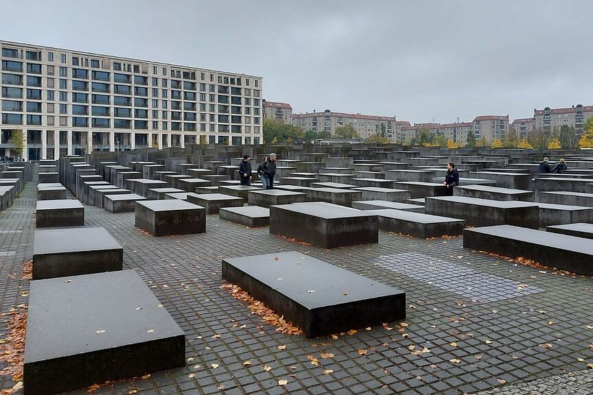 Das Denkmal für die ermordeten Juden in Europa wurde zwischen 2003 und 2005 erbaut und besteht aus 2.711 Betonstelen, die wellenförmig angelegt wurden. Es erinnert an die sechs Millionen Juden und Jüdinnen, die während des Holocausts von den Nationalsozialisten ermordet wurden.